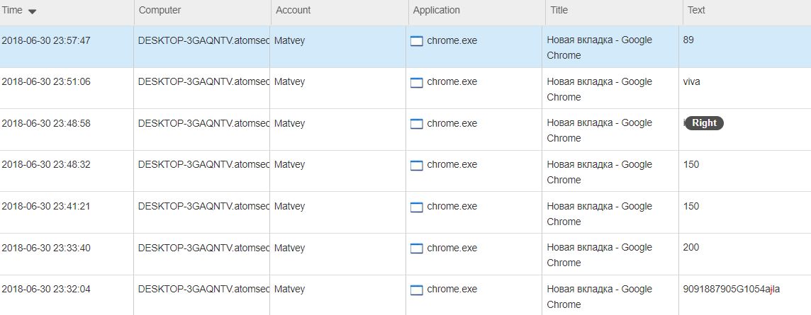 After a while, the agent will receive and apply the new configuration, after which in the “Facts” → “Table” you can see the interception facts containing the text.